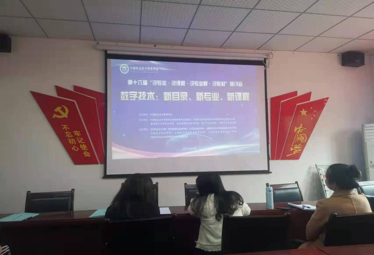 学习中国职业技术学会 第十六届“说专业、说课程、说专业群、说教材”研讨视频会 2022年3月25日下午午14:20全校教职工在我校会议室收看中国职业教育学会第十六届“说专业、说课程、说专业群、说教材”研讨会视频会议。