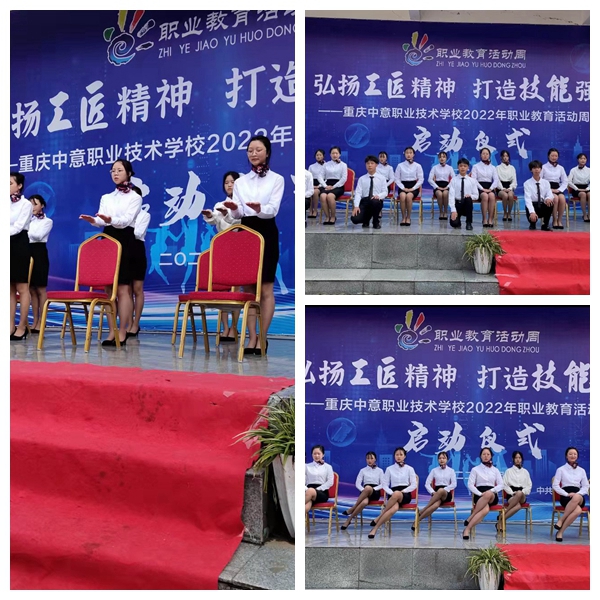 为深入学习贯彻执行习近平总书记关于职业教育的重要指示及全国职业教育大会精神,落实最近全国人大常务委员会修订的从今年5月1日起实施的新的《中华人民共和国职业教育法》,大力宣传劳模精神、劳动精神、工匠精神,弘扬劳动光荣、技能宝贵、创造伟大的时代风尚,向全社会宣传职业教育“前途广阔、大有可为”,展示职业教育重大改革发展成果,营造全社会关心支持职业教育的良好氛围,以实际行动迎接党的二十大胜利召开,我校贯彻落实新的《职业教育法》首届教育活动周启动仪式今天下午隆重举行。 在启动仪式上,学校党支部书记向先政同志作了振奋人心的讲话,接着教务处主任彭永军同志带领全体任课教师进行了宣誓,接着各专业学生通过各专业技能现场展演、实物展览、成果展示,台上台下师生互动,品尝专业成果,同时各专业学生进行所学专业知识表演精彩的文艺节目。