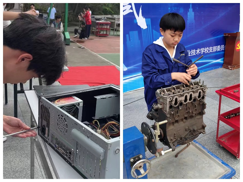 以丰富多彩的系列活动全面展示重庆中意职业技术学校各专业技能教育教学重大改革发展成果。 本次职业教育活动周主要以《计算机应用与维修》专业、《烹饪(中式烹调)》专业、《汽车维修》专业、《铁路客运服务》专业、《航空服务》专业特色开展专业技能展示。让各专业学生自己动手,通过自己所学专业知识,利用学校职教活动周搭建展示平台,展示了自己制作的作品,提升学生的技能,展现了我校职教学子风采。