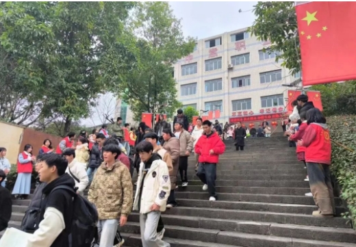 在这个微风凛凛,春意盎然的三月,重庆中意职业技术学校高三的学子们,怀揣梦想,肩负期望,带着老师的期待,家长的盼望,与带队老师走上属于他们的战场。 在全校领导,老师的目送下,学弟学妹们的祝福下学子们踏上属于你们自己的战场。